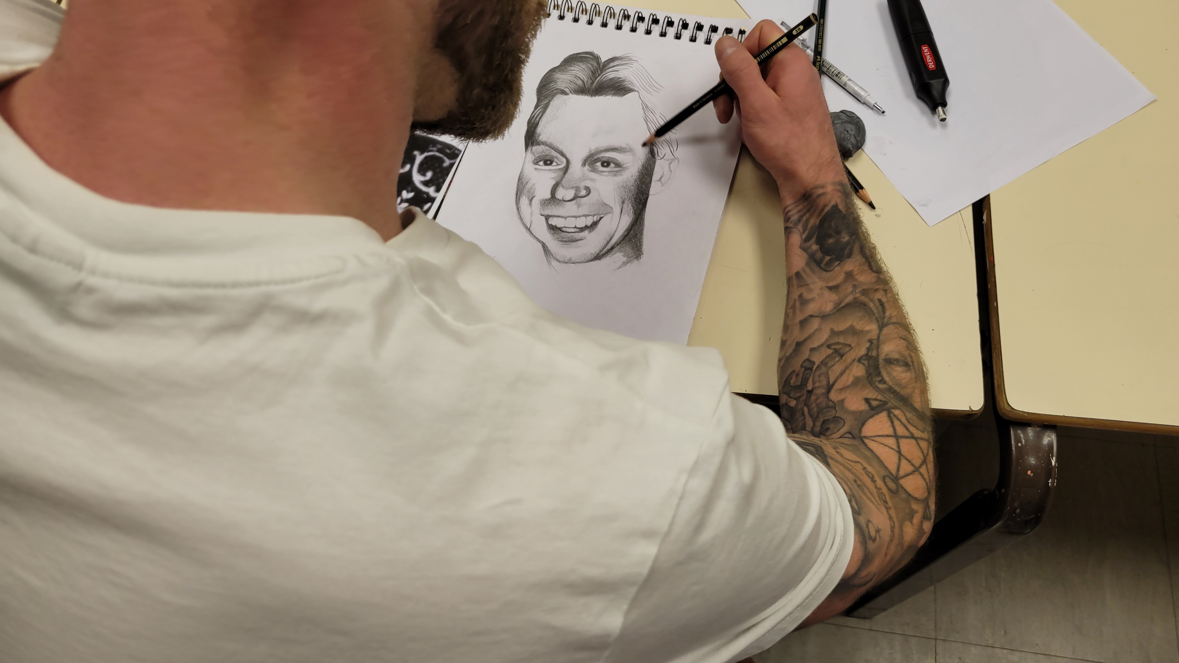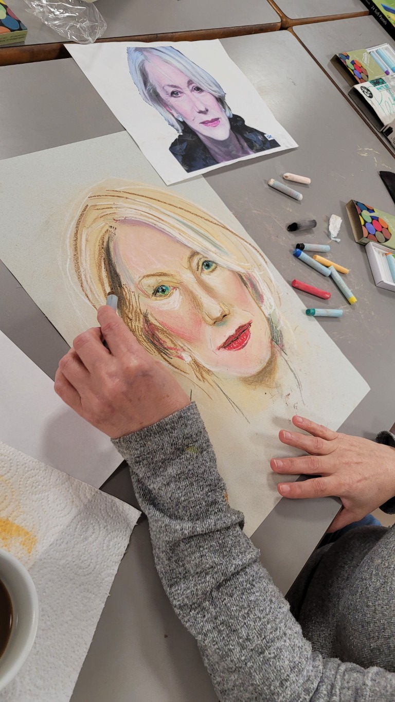 “Thank you for everything you have done for me…the portraits, collage, sizing up, tips and techniques, how to mix flesh colours, shadows and highlights, developing a style, ‘how to polish a turd’, and much more! Oh, and the three minute sketches. Thank you for your concern, hard work and encouragement. Oh, and the wonderful art appreciation sessions. You are a very special person.”