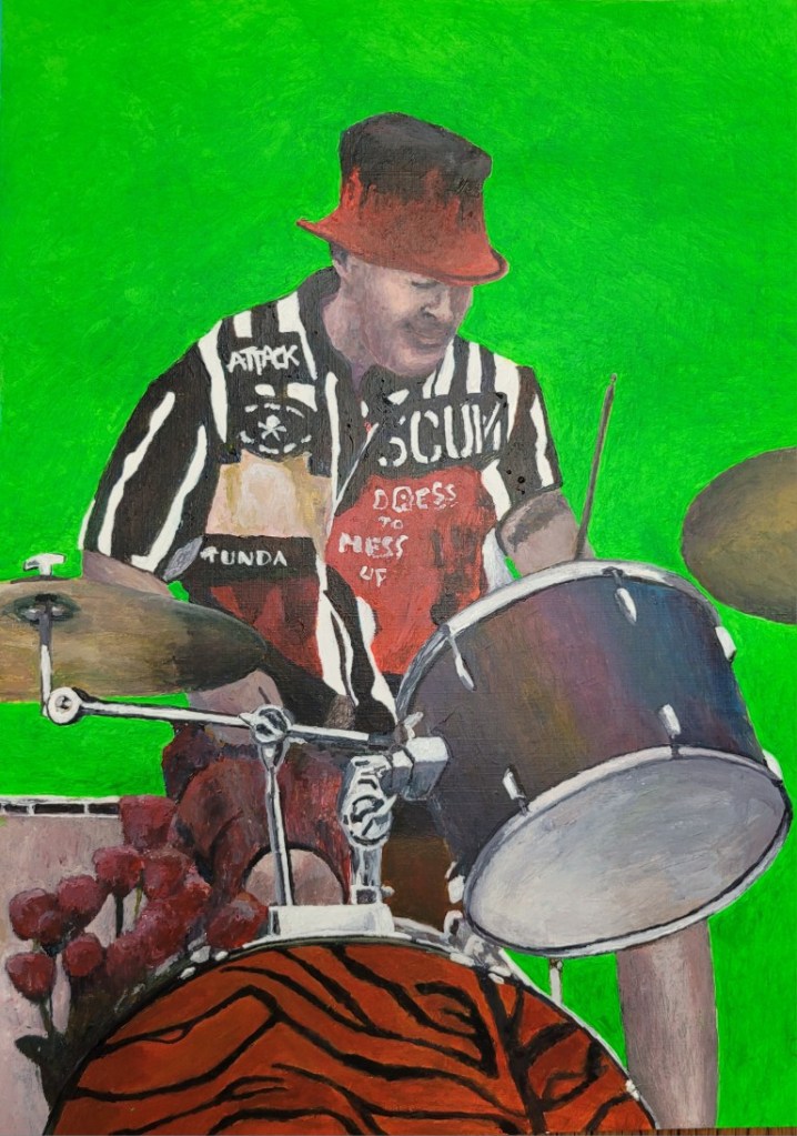 The works below are all self directed and demonstrate a wide variety of subject matter. This is facilitated by tutor demonstrations in materials handling from painting, drawing, collage, print and stitch. This is your class, we assist and learn from each other through tutor facilitation as and when required.