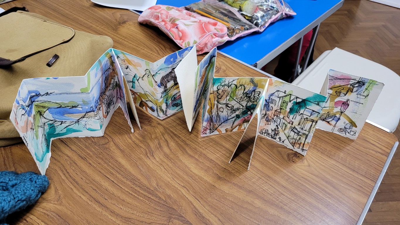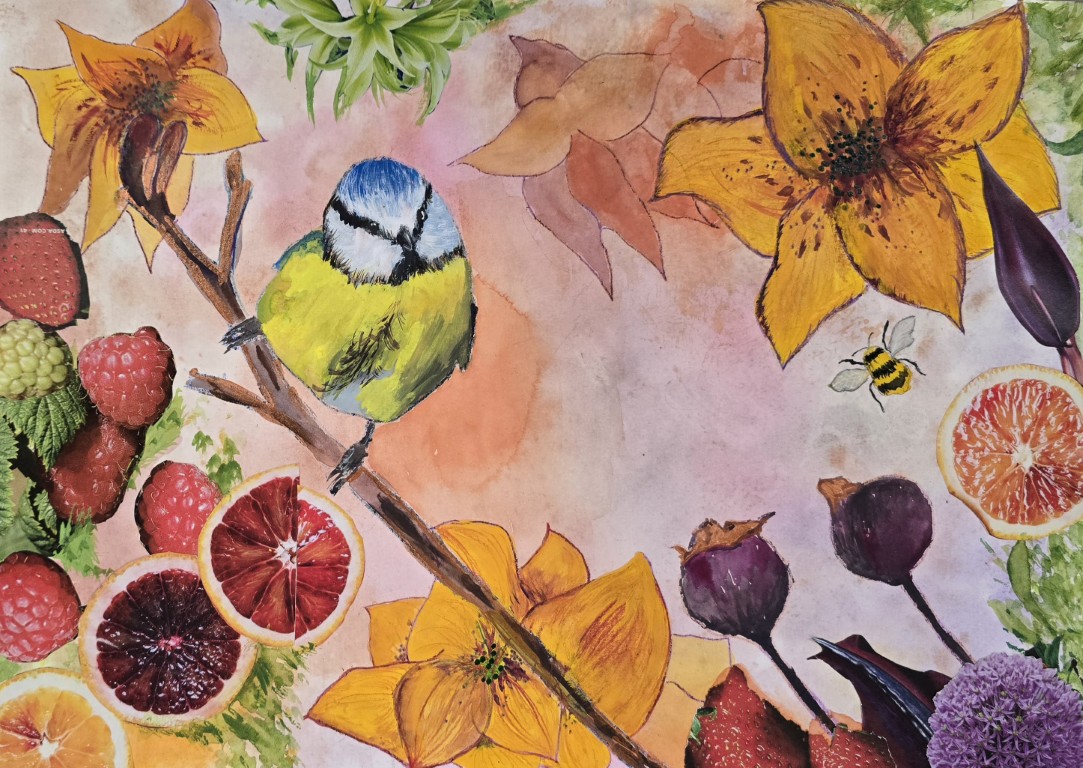 “I have enjoyed the art sessions with Nita who is an enthusiastic teacher, and a talented artist in her own right. It’s a small group in a lovely venue and we have been taught many different techniques and approaches during the course, using a range of materials supplied by Nita. I started as a beginner, rather afraid of art but nature is very good at allying fears, building confidence and inspiring some amazing work I would recommend her art classes to anyone who wants to explore and develop their practice or just dip their toe in and sit and just see what happens.”